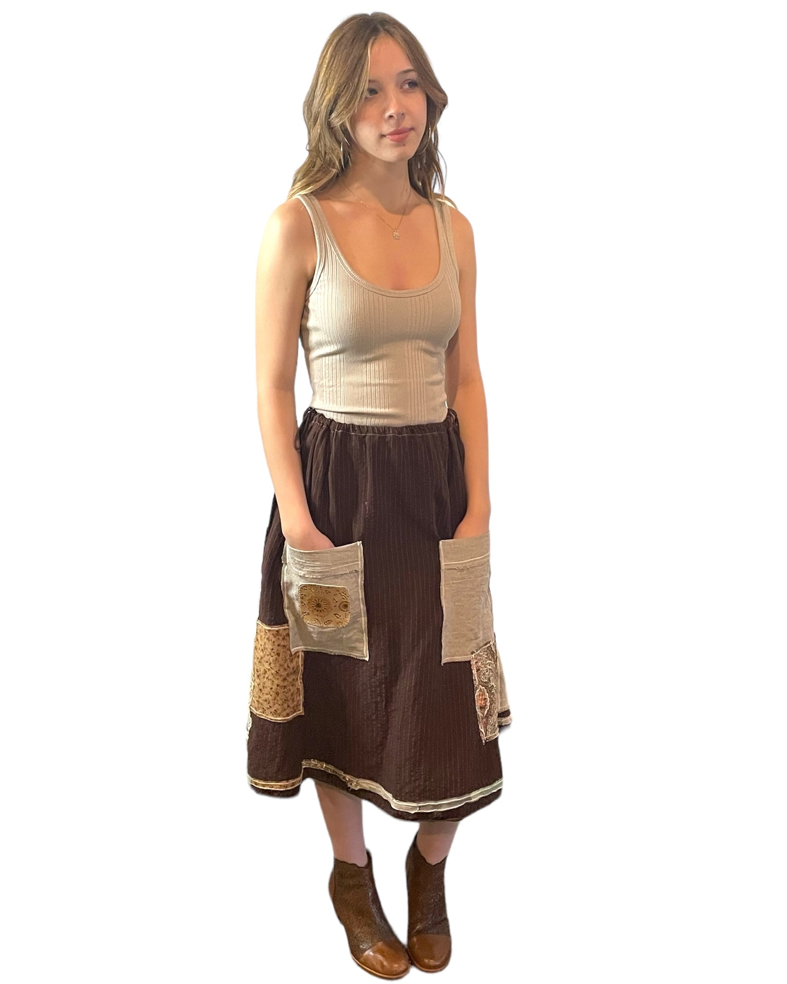 Linen Patchwork Skirt is back by popular demand.